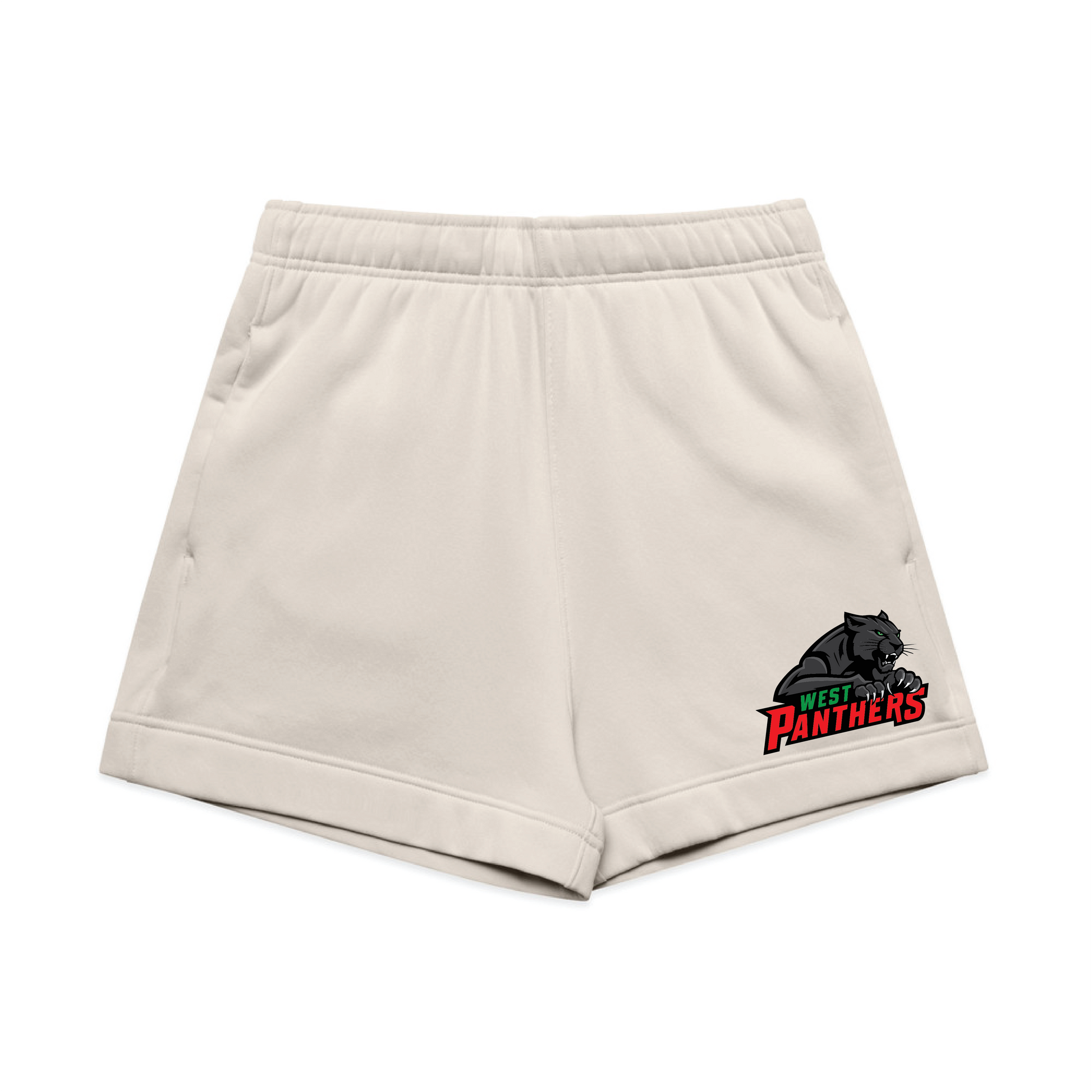 Construction: Sweat shorts, self-fabric elasticated waistband, tonal internal drawcord, 2 side pockets, single pocket at back, double needle hems.